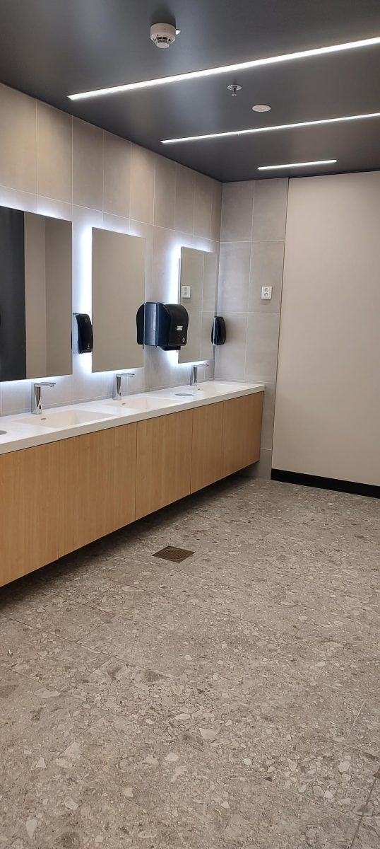 Saneerasimme kohteen kaksi kerrostaloa 12/17 – 9/19 aikana. Asuntoja yhteensä 108 kpl. Kiinteistöissä uusittiin vesikatot, ikkunat, parvekkeet sekä piha- ja parkkialueet. Sisältä kiinteistöihin tehtiin täydellinen saneeraus, talot käytönnössä purettiin sisältä betonirungolle. Molemmat kiinteistöt saivat uuden talotekniikan. Asunnoissa uusittiin kylpyhuone/wc tilat, keittiöt ja kaikki pinnat asunnoissa uusittiin lattiasta kattoon. Samoin yhteiset tilat uusittiin. Porrashuoneet, häkkivarastot, säilytystilat sekä sauna- ja kerhotilat kokivat suuret muutokset.